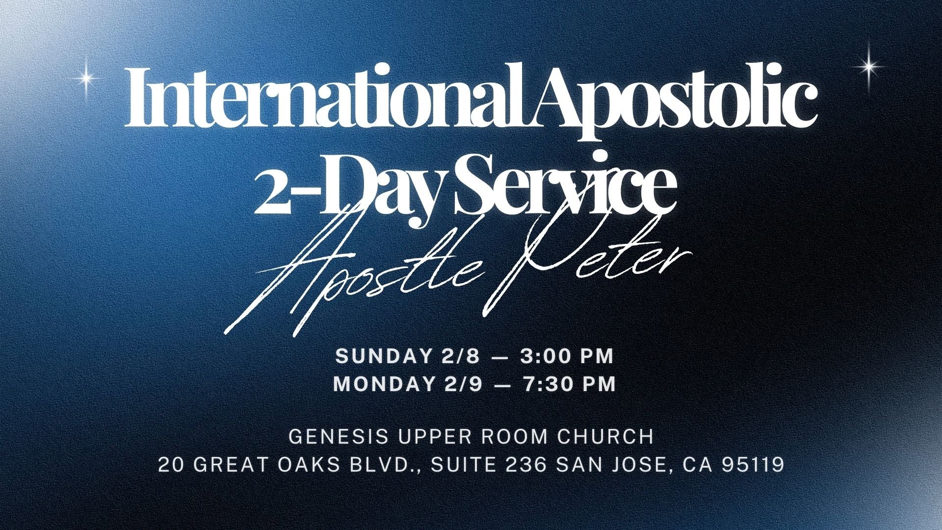 Genesis Upper Room Church welcomes Apostle Peter as our guest speaker for a special two-day service. Join us as he delivers a timely apostolic message and the Word of God.
